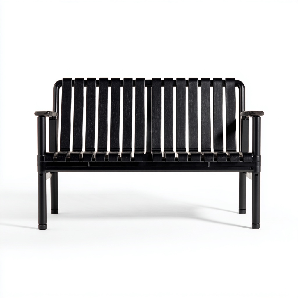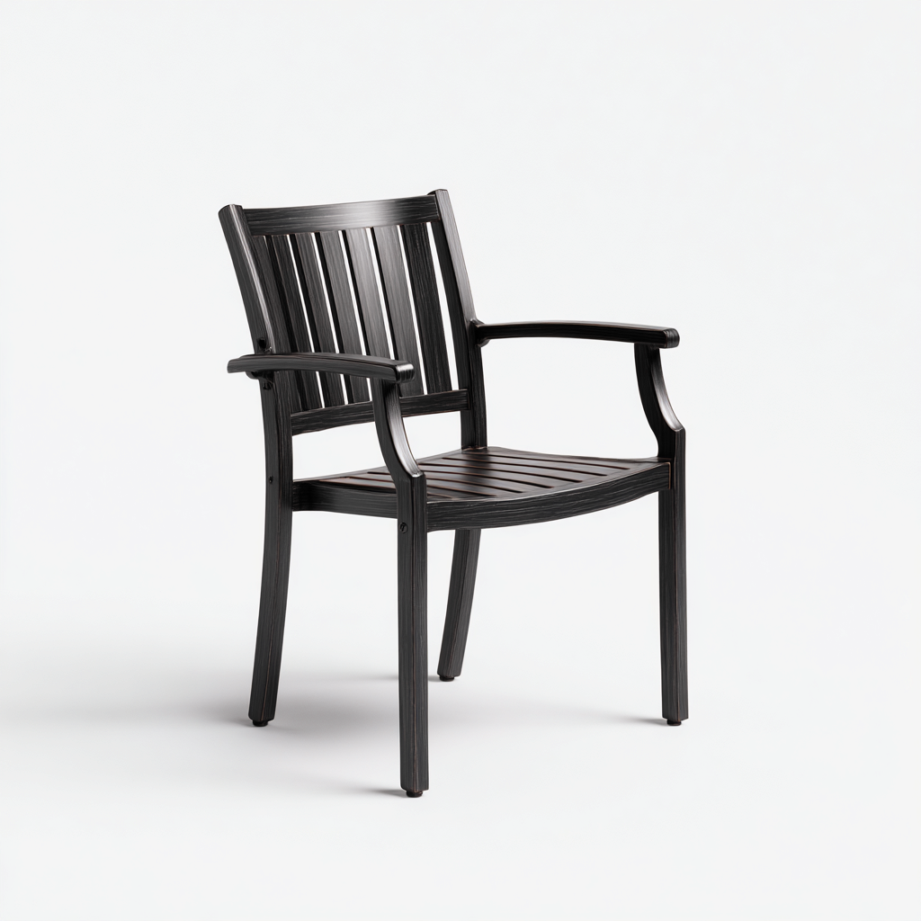 Poltrona da giardino in metallo 56x55x85 cm - nero - design a doghe per esterni adatta per uso outdoor