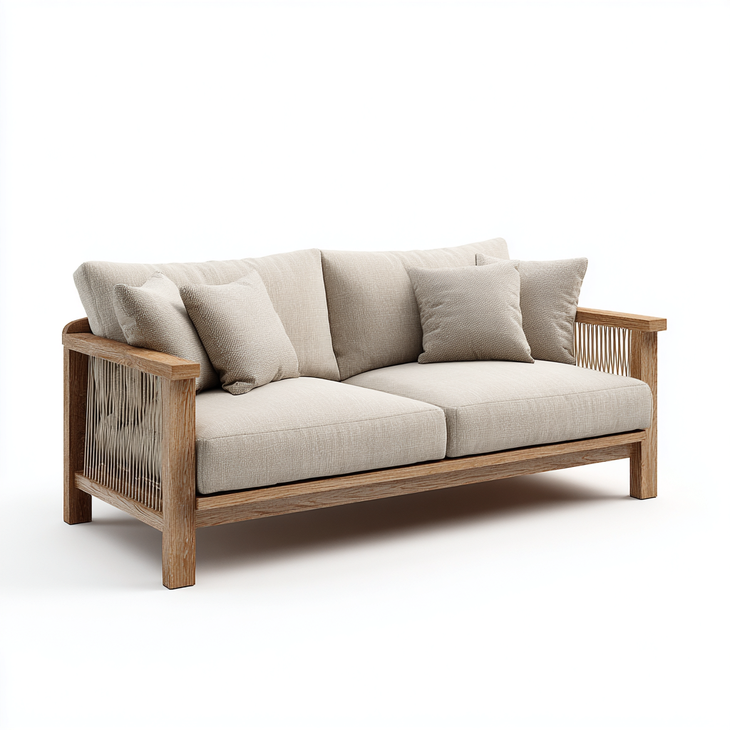 Poltrona da giardino in legno e corda 78x76x85 cm - beige - design moderno per esterni adatta per uso outdoor