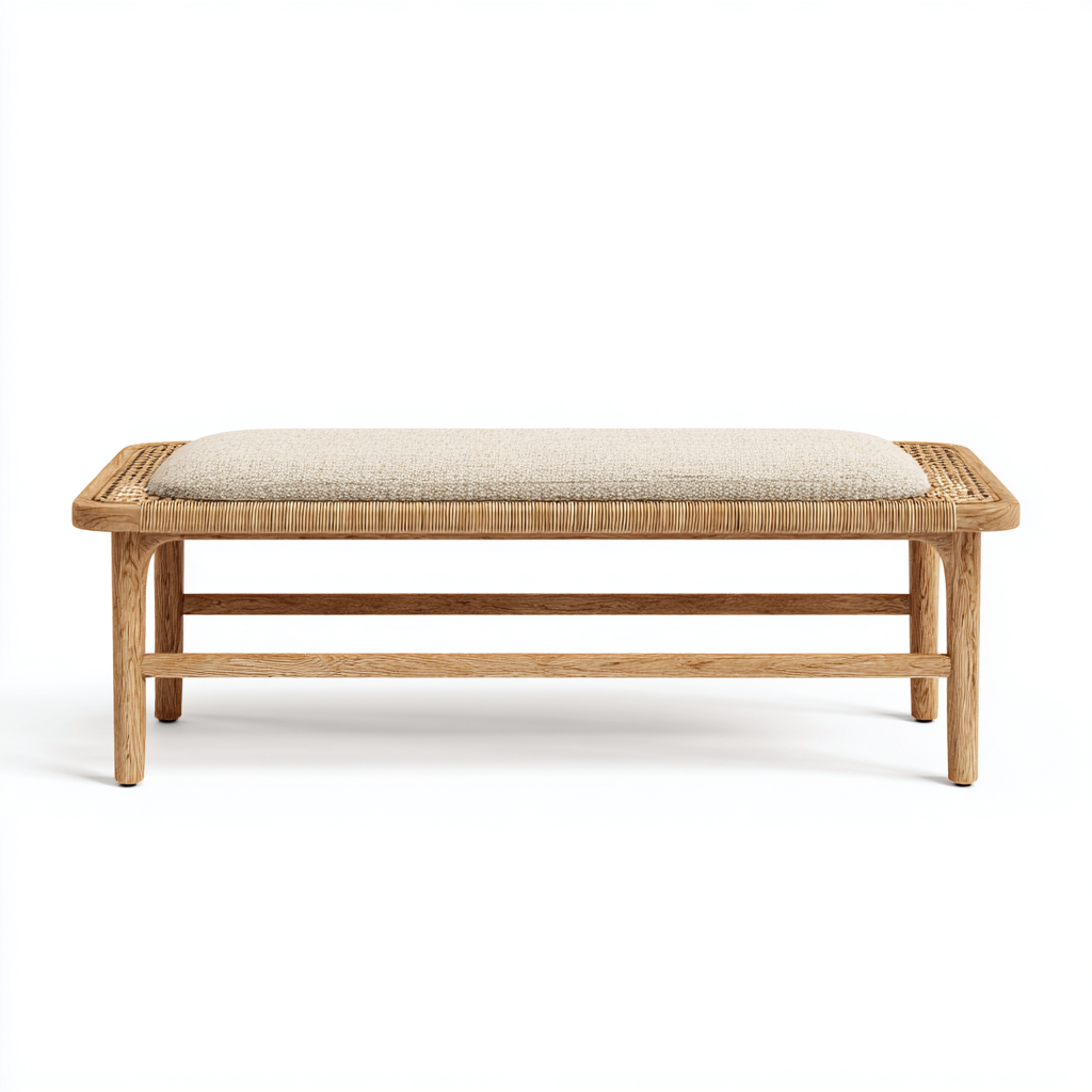 Panca da giardino - legno con seduta imbottita - 110x42x45 cm - naturale - beige - per giardino - design naturale