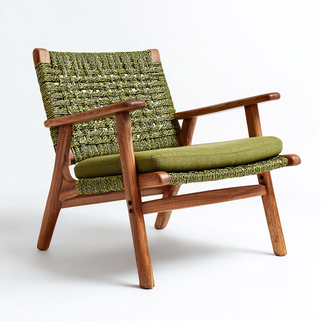 Poltrona da giardino in legno e corda 75x70x82 cm - verde - design intrecciato per esterni adatta per uso outdoor