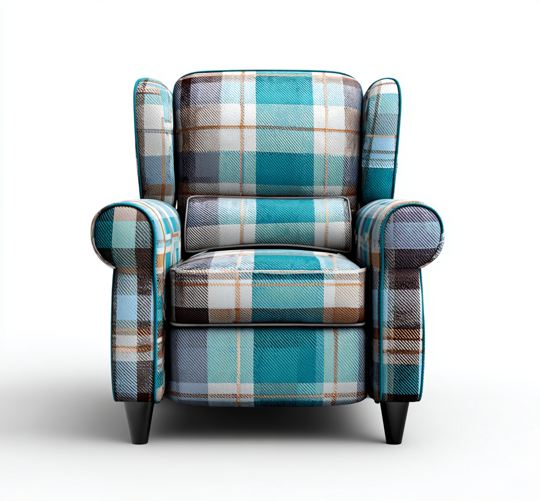 Poltrona reclinabile in tessuto scozzese 90x85x100 cm - turchese - bianco - marrone - stile moderno per soggiorno