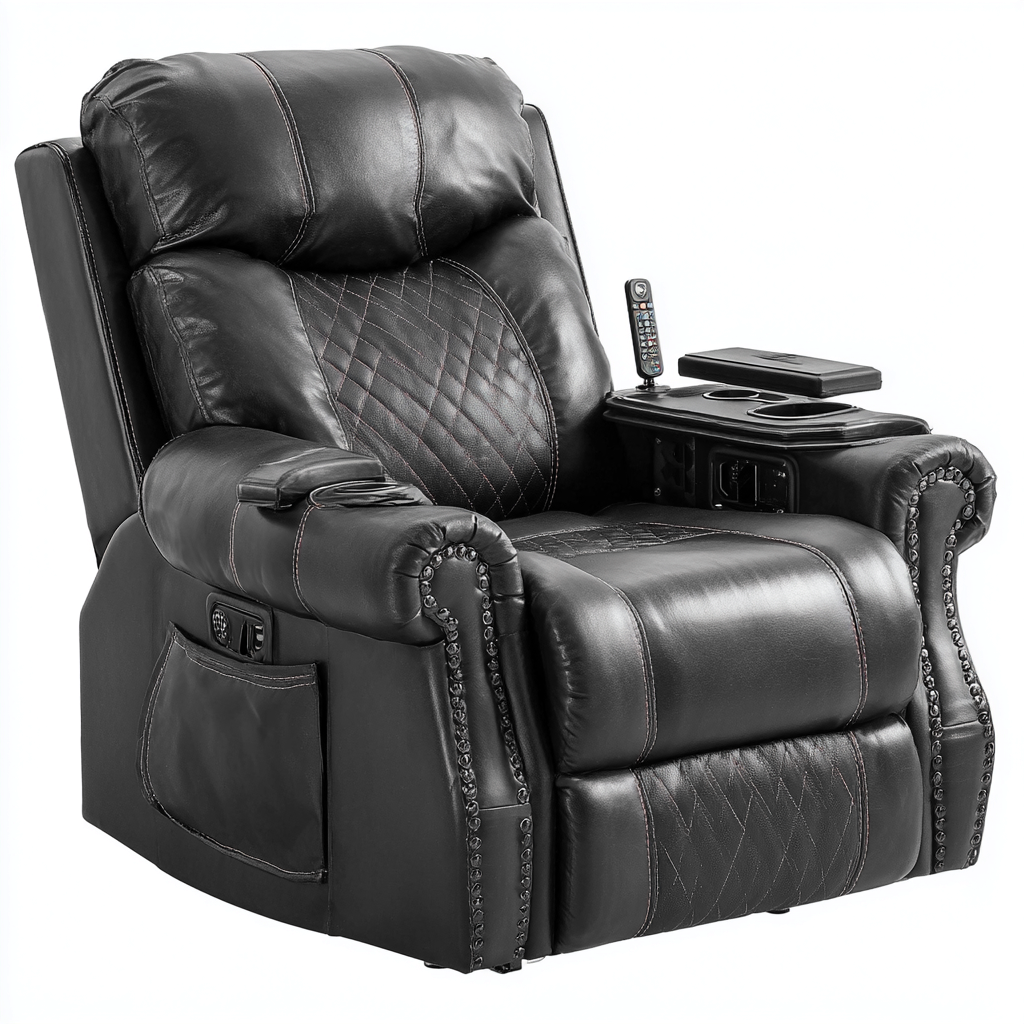 Poltrona reclinabile in pelle naturale 100x90x105 cm - nero - stile moderno per soggiorno