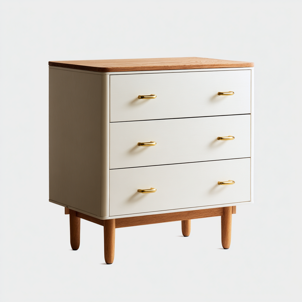 Cassettiera in legno 78x40x85 cm - bianco - naturale - adatta al soggiorno - stile moderno
