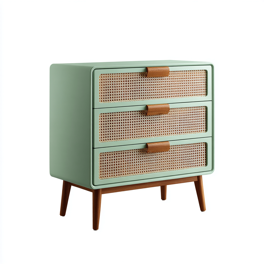Cassettiera in legno e rattan 60x35x75 cm - verde menta - adatta al soggiorno - stile moderno