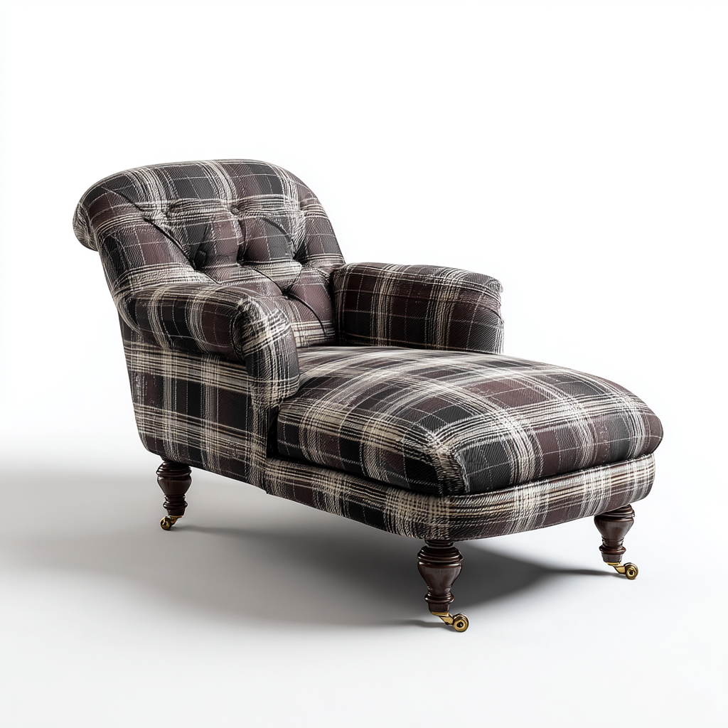 Questa chaise longue in tessuto grigio con motivo scozzese propone uno stile classico dal carattere distintivo, ideale per creare un angolo di relax accogliente all'interno del soggiorno.