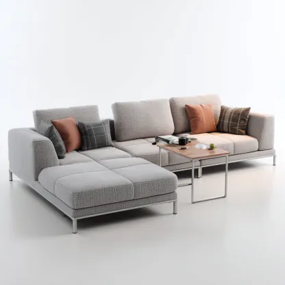 La configurazione modulare permette di adattare il divano a diverse esigenze abitative. Le sedute ampie favoriscono una postura rilassata mentre il design ergonomico supporta un'esperienza di seduta confortevole.