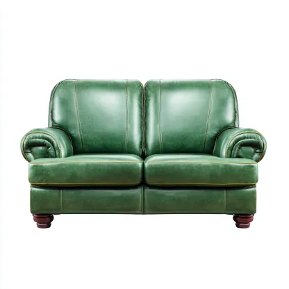 Questo divano lineare in similpelle verde presenta uno stile classico e una seduta confortevole, ideale per arredare il soggiorno con un aspetto elegante e tradizionale.