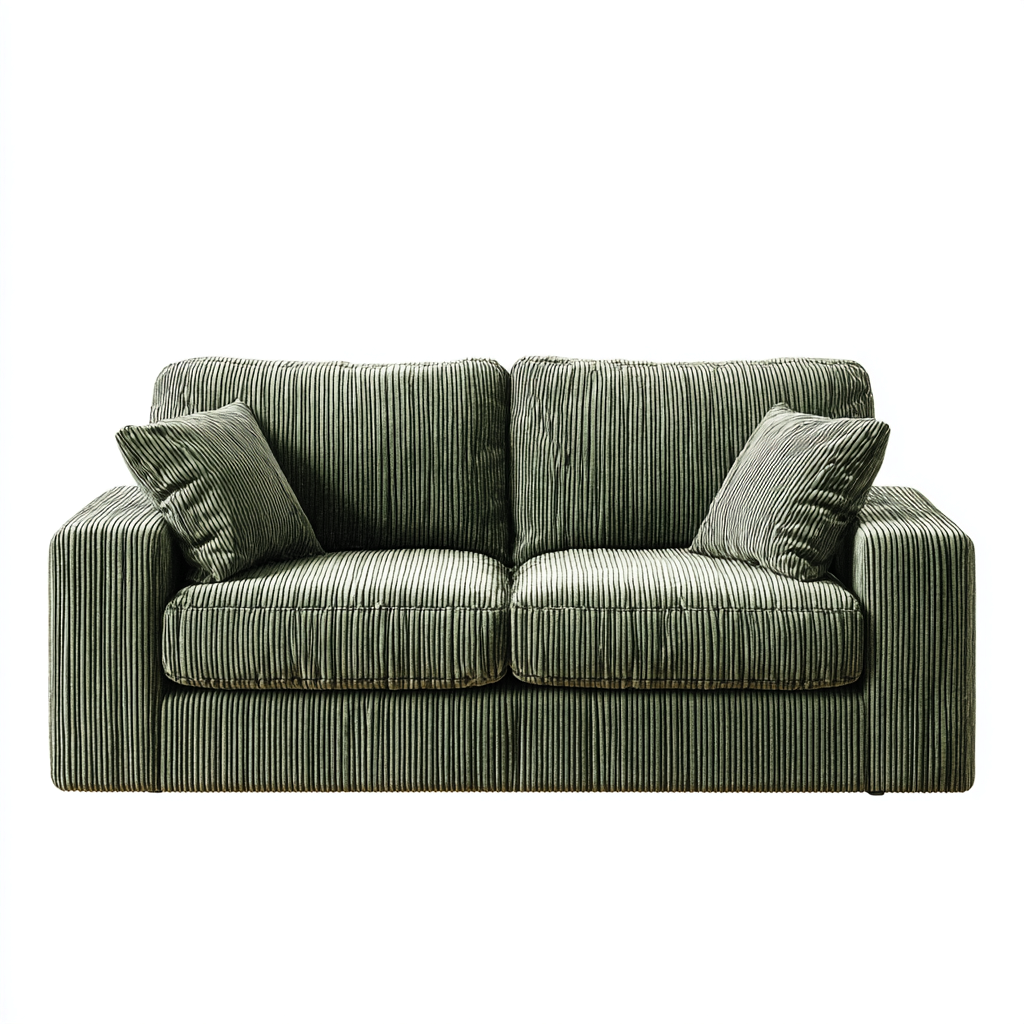 La seduta profonda e la forma compatta rendono il divano adatto a diversi spazi domestici. Le linee moderne e il tessuto a coste aggiungono carattere all'arredamento del soggiorno.