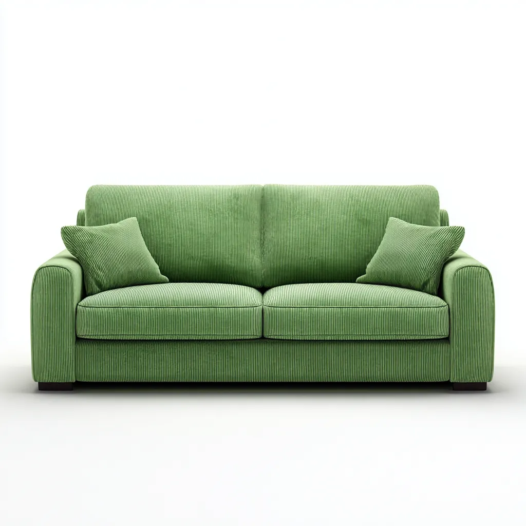 La seduta ampia e il design morbido rendono il divano adatto a diversi spazi domestici. Il tessuto a coste aggiunge carattere visivo e si integra facilmente in ambienti moderni.