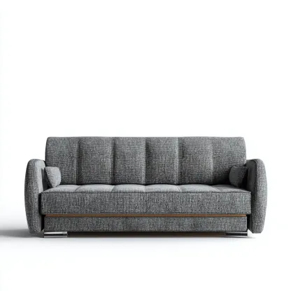 Questo divano lineare in tessuto grigio presenta uno stile moderno e una seduta confortevole, adatto ad arredare il soggiorno con un'estetica essenziale e funzionale.