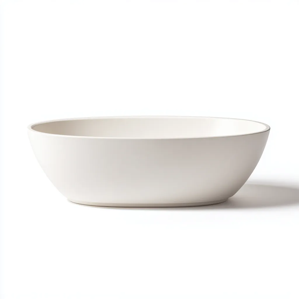 La forma ovale ampia migliora la capacità interna e favorisce un uso confortevole, mentre la finitura opaca riduce i segni di utilizzo quotidiano.