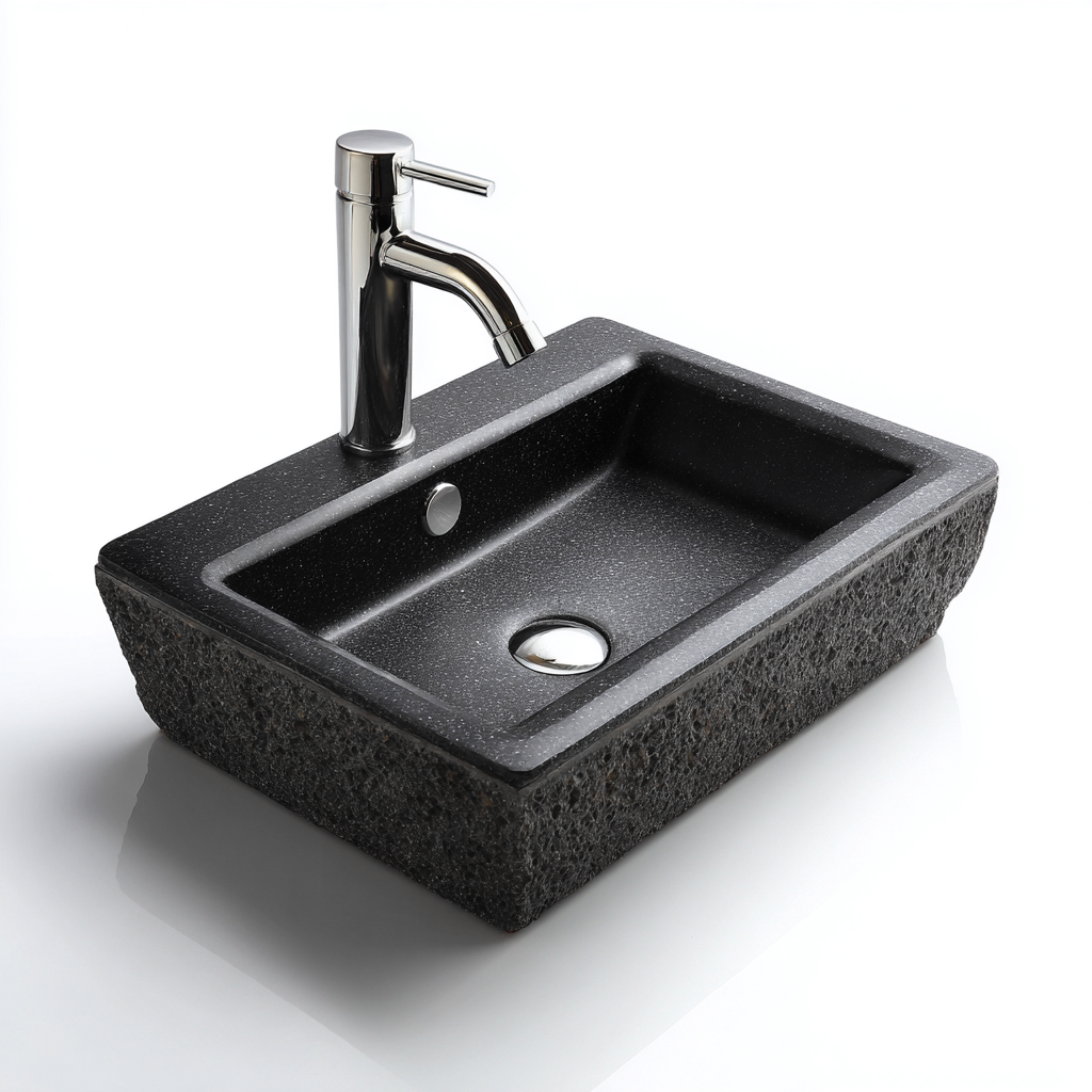 Lavabo pietra 45x32x12 cm nero per bagno design moderno