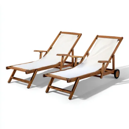 Questo lettino da sole combina una struttura in legno con superficie in tessuto resistente offrendo un'estetica naturale ideale per giardini terrazzi e zone relax esterne. Il design regolabile permette un utilizzo confortevole nelle attività all'aperto.