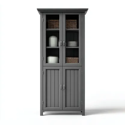 Questo mobile bagno alto in stile classico offre un'ampia capacità di organizzazione grazie alla combinazione di vani a vista con ante in vetro e uno scomparto inferiore chiuso. Ideale per mantenere ordinati prodotti da bagno asciugamani e articoli di uso quotidiano.