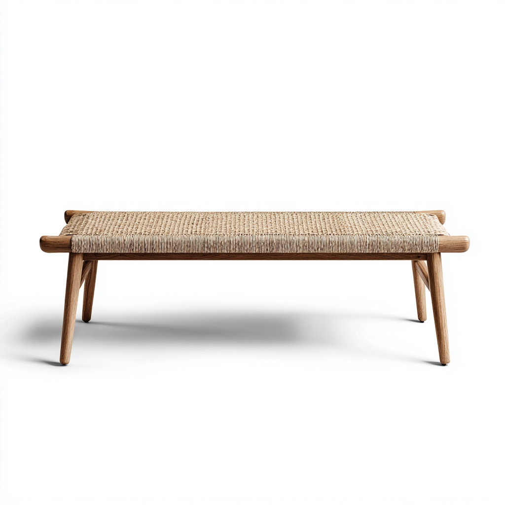 Questa panca da giardino in legno naturale con seduta in rattan intrecciato offre uno stile essenziale e armonioso adatto a terrazze cortili e spazi verdi. Il profilo basso e le linee pulite mettono in risalto la bellezza dei materiali naturali.