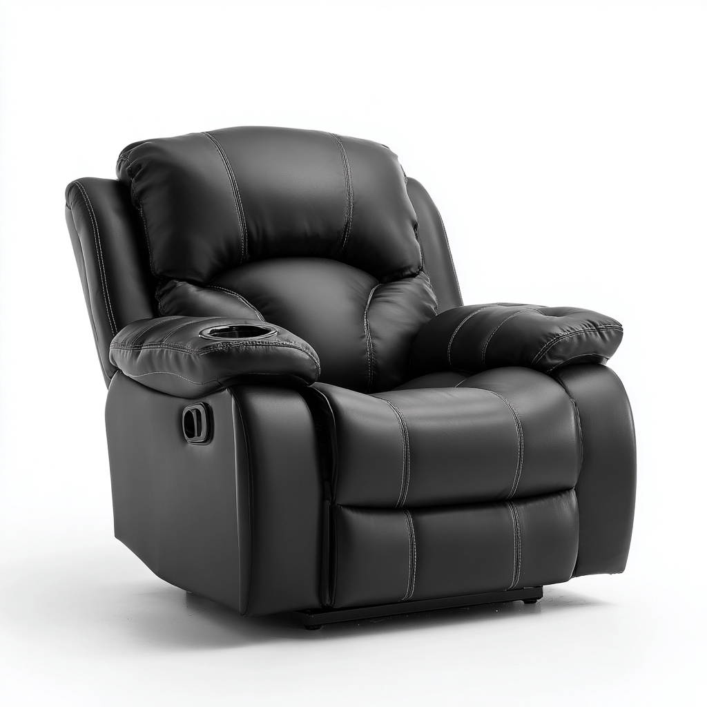 Questa poltrona reclinabile in pelle naturale nera offre un elevato livello di comfort grazie all'imbottitura spessa e al design ergonomico. È adatta per creare un angolo relax accogliente in soggiorno.