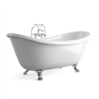 Questa vasca da bagno freestanding in stile classico presenta una forma curva elegante con piedini decorativi e rubinetteria integrata, ideale per creare un'atmosfera raffinata all'interno del bagno. La struttura profonda offre una piacevole esperienza di immersione.